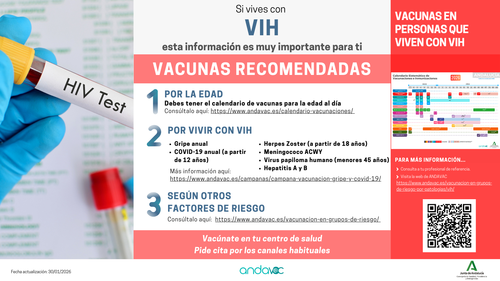 Si vive con VIH, hable con su profesional sanitario de referencia para ponerse al día con las vacunas